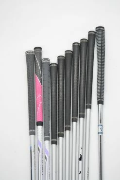 Set includes a TaylorMade Burner HT Driver, TaylorMade Burner Superfast 2.0 5 Wood, TaylorMade Burner Superfast 2.0 5 Hybrid, AMF Wide Track AVS Irons 6-PW, SW, and a 35.5in Ashton Golf Bermuda Triangle T-180 Grand Bahama M-2 Putter. Irons are in good condition, with normal-moderate wear to their heads and faces. Shafts are stock AMF graphite shafts in W Flex with stock AMF Grips. Shafts are .5in longer than standard length.